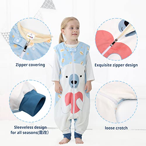 Baby Slaapzak 1.5 Tog Peuter Slaapzak met Benen Rits Voorkant Herfst Winter Warm Mouwloos Slaappak Anti Kick, 5-7 Jaar