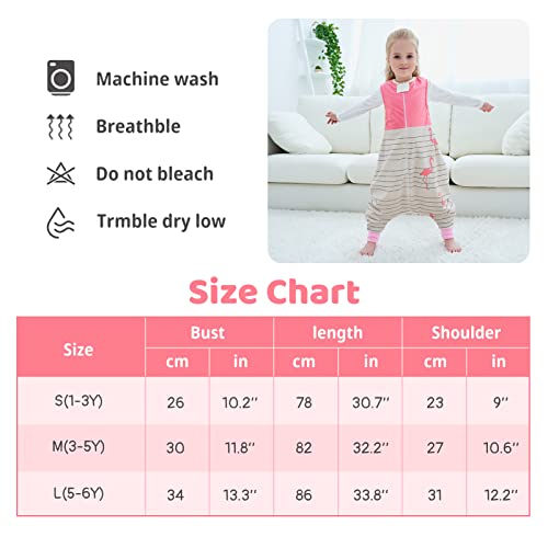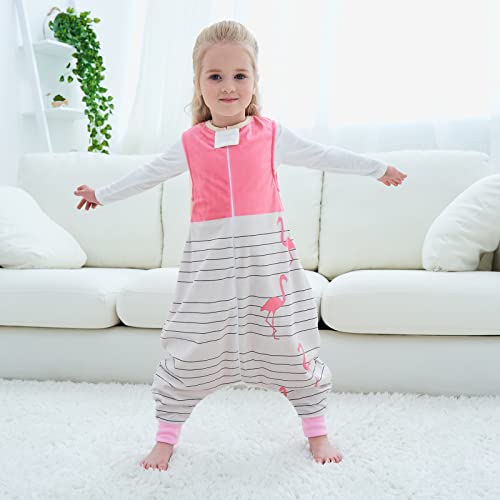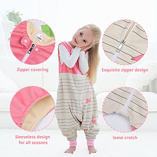 Baby Slaapzak 1,5 Tog Peuter Slaapzak met Benen Rits Voorkant Anti-Kick Mouwloos Nachtkleding voor Jongens Meisjes 3-5 Jaar M, Roze Vogel
