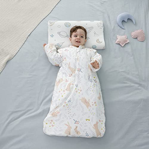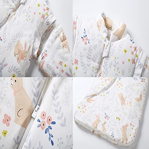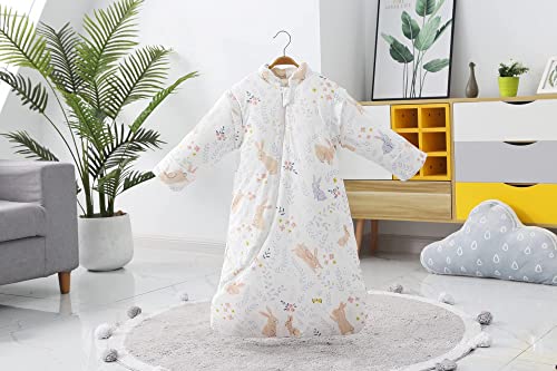 Baby winterslaapzak kinderslaapzak 3,5 TOG slaapzakken van biologisch katoen verschillende maten vanaf geboorte tot 4 jaar oud (L: lengte 60 cm-75 cm/3-7 maanden, wit konijn)
