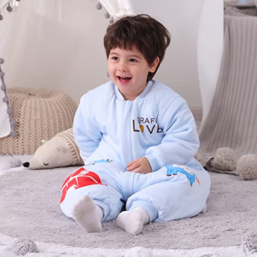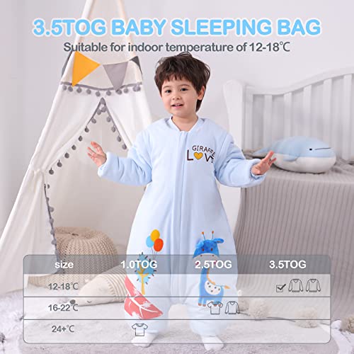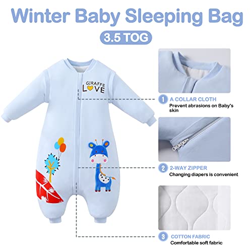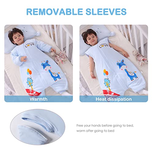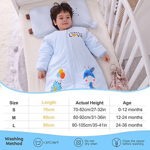 Babyslaapzak met lange mouwen, kinderslaapzak met voeten voor in de winter, afneembare mouwen, katoen, jongens meisjes, uniseks, overall, pyjama, 3,5 tog, S, maat: 80 (0-12 maanden)