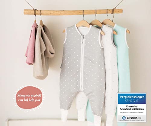 Specificaties: Ehrenkind® Babyslaapzak met pijpjes | gemaakt van biologisch katoen | geschikt voor het hele jaar door | kledingmaat 100 Kleur wit met grijze sterren