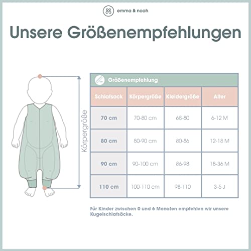 Specificaties: emma & noah Babyslaapzak met voetjes, 1,0 TOG, slaapzak voor het hele jaar, slaapzak met benen voor de lente, zomer en herfst, 100% biologisch katoen, Oeko-Tex gecertificeerd