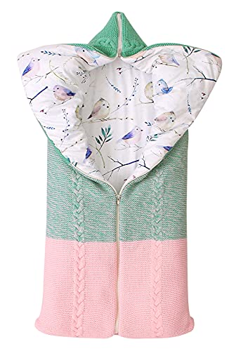 Happy Cherry Slaapzak voor pasgeborenen, babyslaapzak, inbakerzak, warm, winter, met ritssluiting, meisjes, jongens, auto, kinderwagen, driekleurig, roze/groen