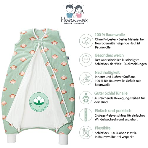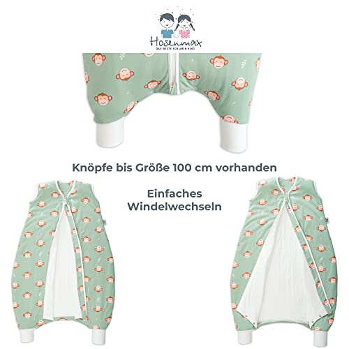 Hosenmax® Babyslaapzak met benen – biologisch katoen – komt overeen met TOG 2.5 – slaapzak voor het hele jaar door maat 56/58 tot 120 cm (brute aap, 110 cm)