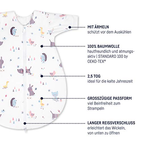 Julius Zöllner Baby winterslaapzak van jersey katoen, maat 62, Öko-Tex Standard 100, Crazy Animals