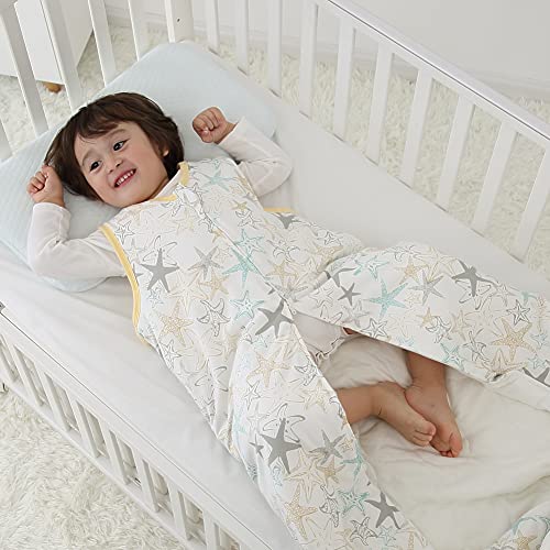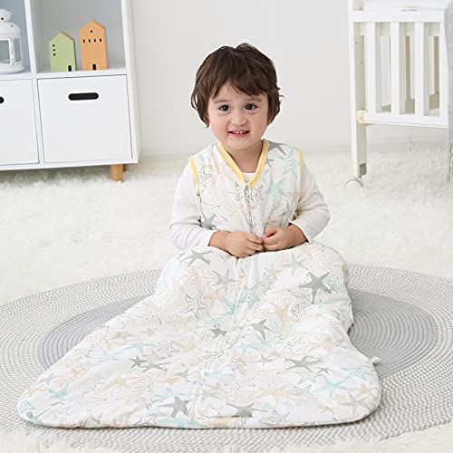 Kinderwinterslaapzak baby slaapzak meisjes jongens katoenen babyslaapzak 2,5 TOG (18-36 maanden, kleurrijke zeesterren)