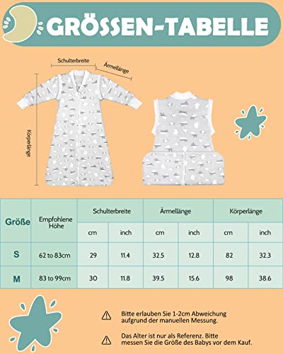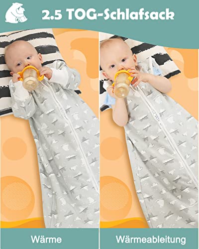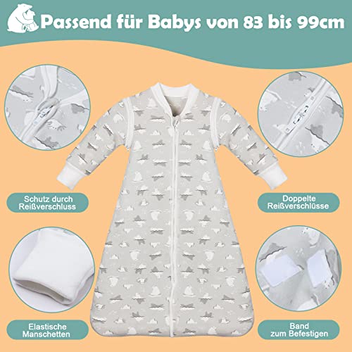 Lictin Slaapzak baby 2,5 TOG babyslaapzak winter met afneembare mouwen, babyslaapzak pasgeborenen slaapzak kinderen voor 6 83-99 cm