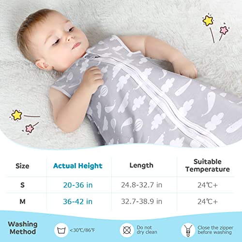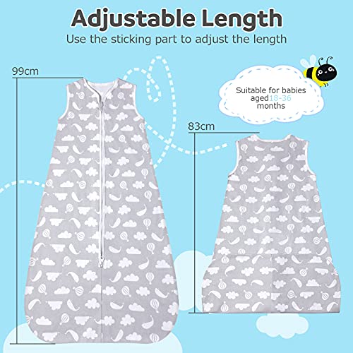 Lictin Slaapzak baby zomerslaapzak baby pure slaapzak kinderen 0,5 TOG baby slaapzak met dubbele ritssluiting, zomerslaapzak voor baby 18-36 maanden met instelbare lengte 83-99 cm (grijs)