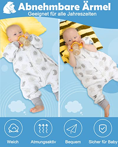 Lictin Slaapzak met voetjes, slaapzak baby babyslaapzak met afneembare mouwen voor zuigelingen kinderen van 1-3 jaar van 75 tot 95 cm van katoen 2,0 tog