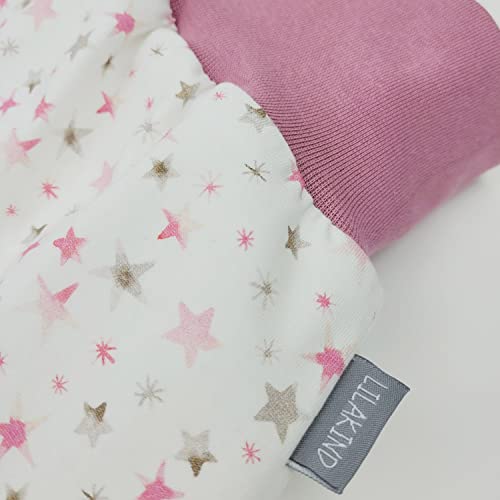 Lilakind ” Baby kinderen zomer winter slaapzak trappelzak met zonder ritssluiting Jersey wit sterren roze Gr. S-XXL – Made in Germany, Roze met ritssluiting., 90 cm (Lang)