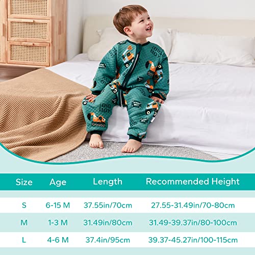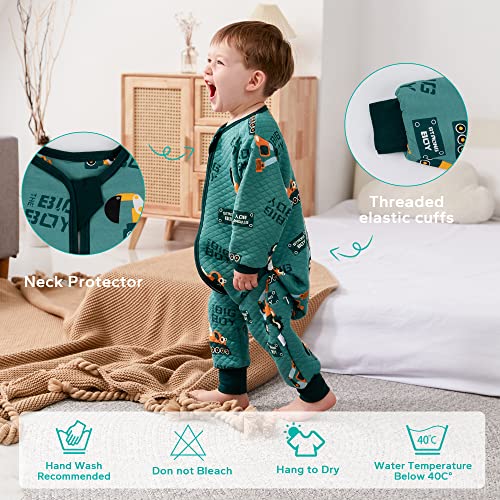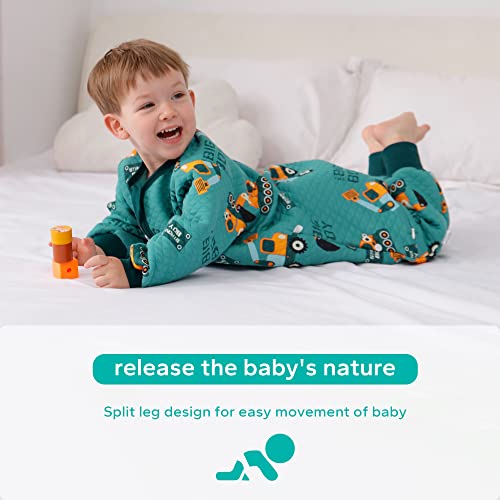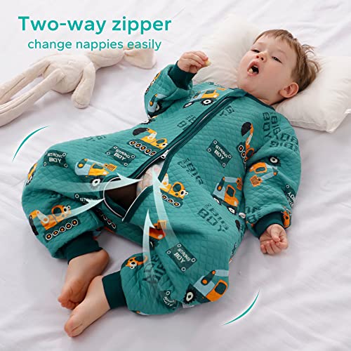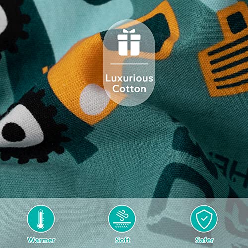 Lilbestie Baby slaapzak met voeten, winter peuter slaapzak met lange mouwen 100% katoen kinderen draagbare deken slaapwandelaar 2.0 TOG warme slaapzak, (graafmachine, 4-6T)