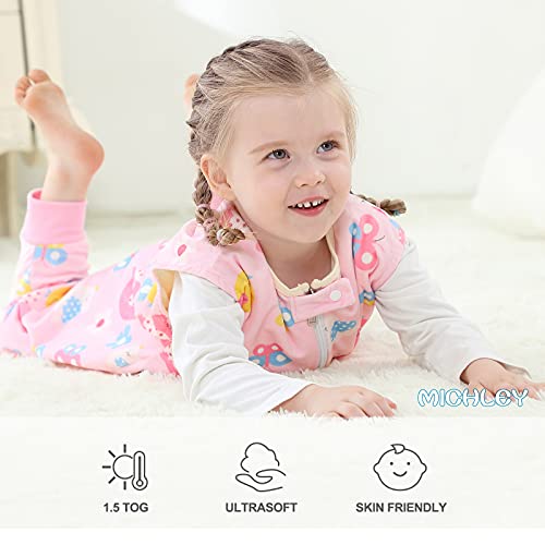 MICHLEY Babyslaapzak met voeten, slaapzak voor het hele jaar, meisjes en jongens, slaapromper, voor vier seizoenen, zomerslaapzak met benen