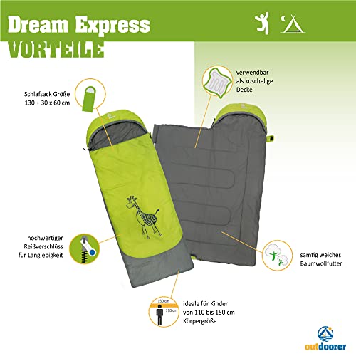 Specificaties: outdoorer Kinderslaapzak Dream Express groen – kinderslaapzak van katoen met functie als dekenslaapzak
