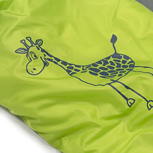 Ideale kinderslaapzak: dankzij het zacht gevoerde hoofdeinde en de extra warmtekraag kunnen de kleintjes zich bijzonder goed aan de slaapzak nestelen. Bovendien bevindt zich op de voorzijde een schattige giraffprint.