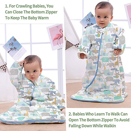 âăAfneembare mouwenă De manchetten van de katoenen babyslaapzak kunnen worden losgemaakt. De mouwen kunnen worden verwijderd voordat de baby naar bed gaat, wat handig is voor actieve handen. Trek tijdens het slapen aan de mouwen om de baby altijd warm te houden. Of u kunt beslissen of de baby mouwen nodig heeft op basis van de kamertemperatuur.