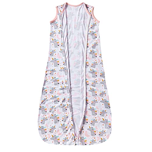 SCHLABIGU Babyzomerslaapzak 0,5 TOG, kinderzomerslaapzak voor meisjes en jongens, babyslaapzak 130 cm (roze dier, 3-6 jaar)