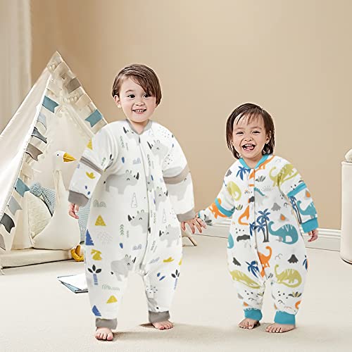 SONARIN Babyslaapzak met poten en afneembare mouwen, zachte katoenen babydeken anti-kick winterslaapzak voor peuters en kinderen, verschillende maten van 3 maanden tot 7 jaar oud, Dinosaurus, XL
