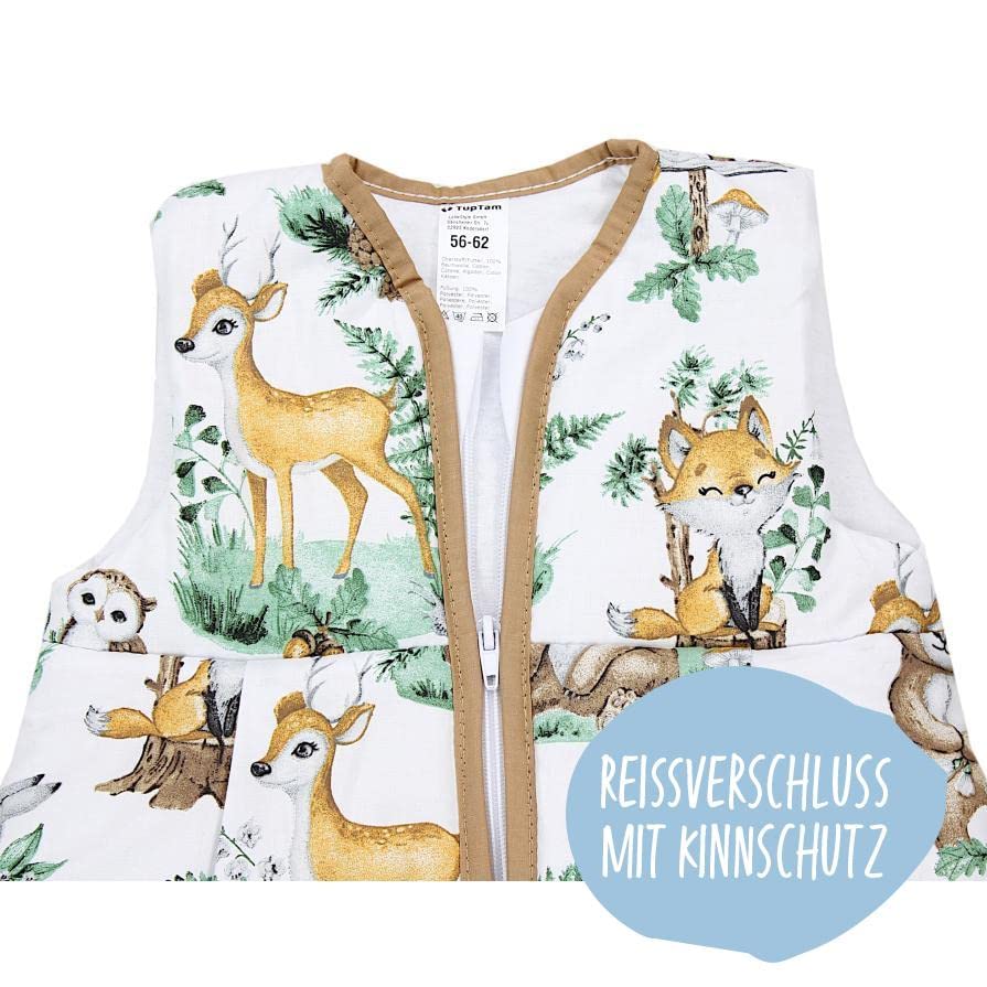 Deze mooie babyslaapzak zonder mouwen met een modieus motief geeft de baby een aangenaam slaapgevoel en veel geborgenheid. De brede bolvorm van de slaapzak zorgt voor een royale bewegingsvrijheid. Gemaakt van knuffelig zacht katoen, dat de tere babyhuid zacht omhelst en een hoog niveau van comfort biedt tijdens het slapen. Dankzij de polyester vulling is de slaapzak ideaal voor het koude seizoen, maar is ook super geschikt voor gebruik het hele jaar door en voor kamertemperaturen van ca. 17-22 graden. Uitgerust met een soepel lopende verborgen ritssluiting die van boven naar beneden opengaat. Met unieke motieven voor meisjes en jongens: Vossen, wolken, olifanten of sterren. Gemaakt in de EU.