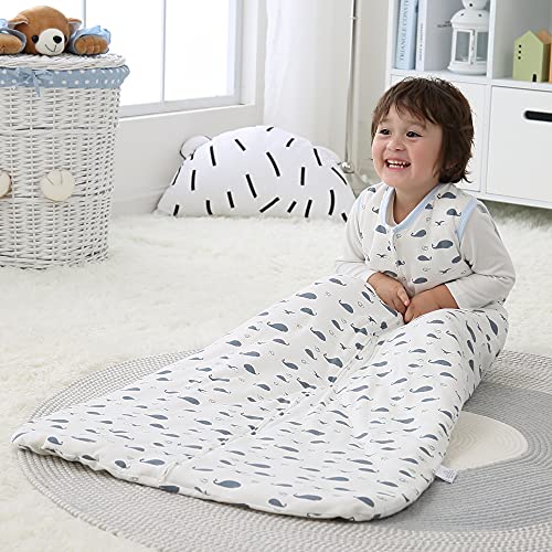 Winterslaapzak baby mouwloos jongens meisjes unisex, herfst baby buitenzak in 2,5 TOG kinderslaapzak. 90 cm (12-18 maanden), walvis-blauw