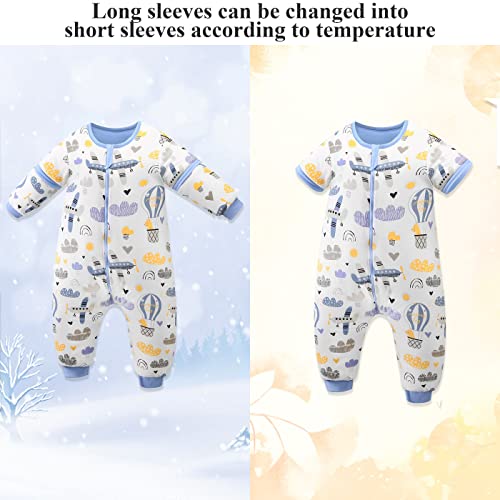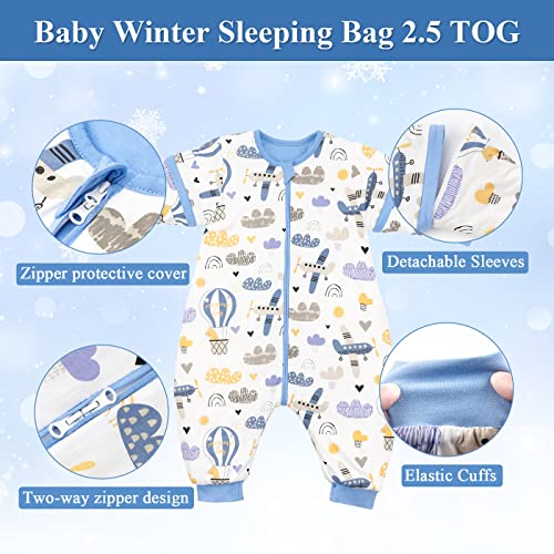 ZIGJOY Baby Slaapzak met Voeten 2.5 TOG Warm Draagbare Deken met Afneembare Mouwen 100% Katoen Pyjama 12-24 Maanden Slaapzak voor Peuter Meisje Jongen Kitty